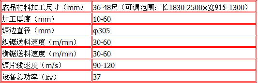 建業(yè)全自動(dòng)鋸邊機(jī)技術(shù)參數(shù):